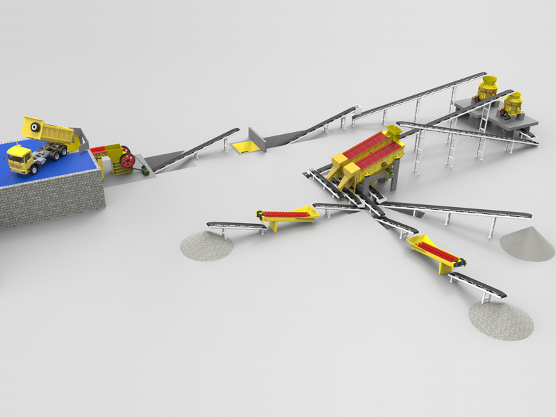 主機配置:顎式破碎機、,反擊式破碎機、,振動給料機、,圓振動篩